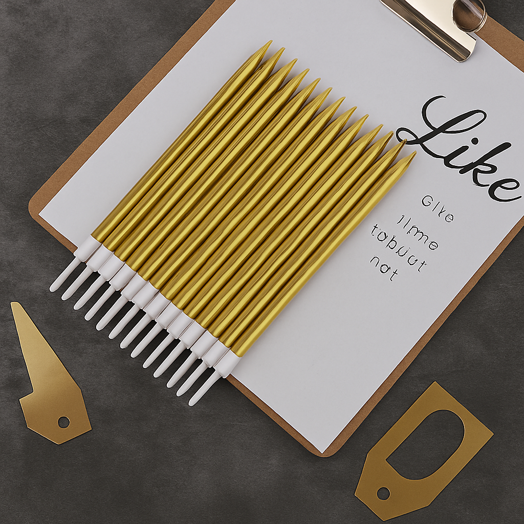 - 🎂 ELEGANT GOLD CAKE CANDLES: Make every celebration shine with our stunning gold birthday candles. Their sleek metallic finish adds a luxurious touch to cakes and cupcakes.